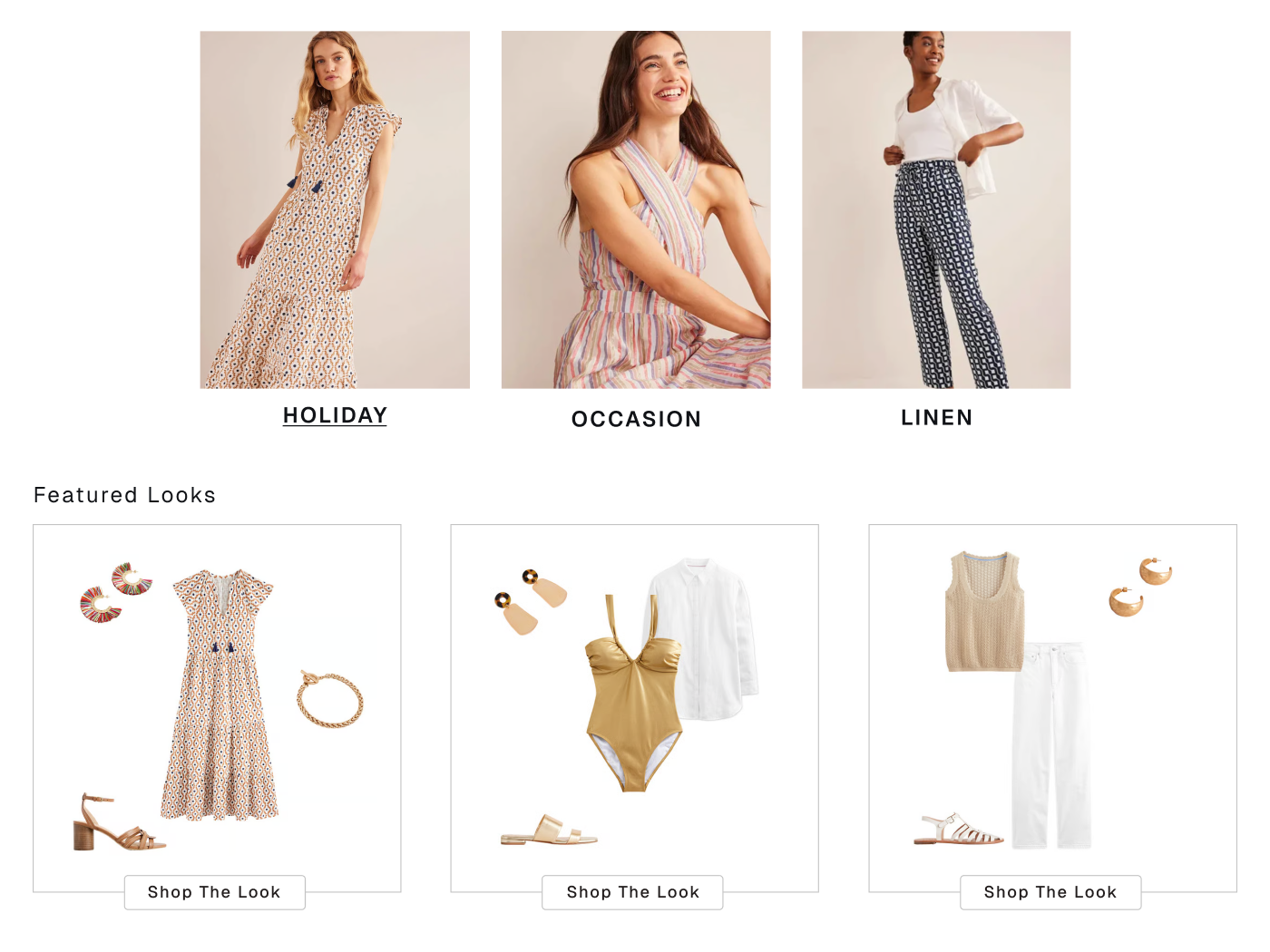 Complete-the-look galleries, shop-by-occasion experiences, and curated outfit content that drives engagement and conversion. Generated automatically, aligned to your merchandising strategy, and ready to deploy across site, email, and social.