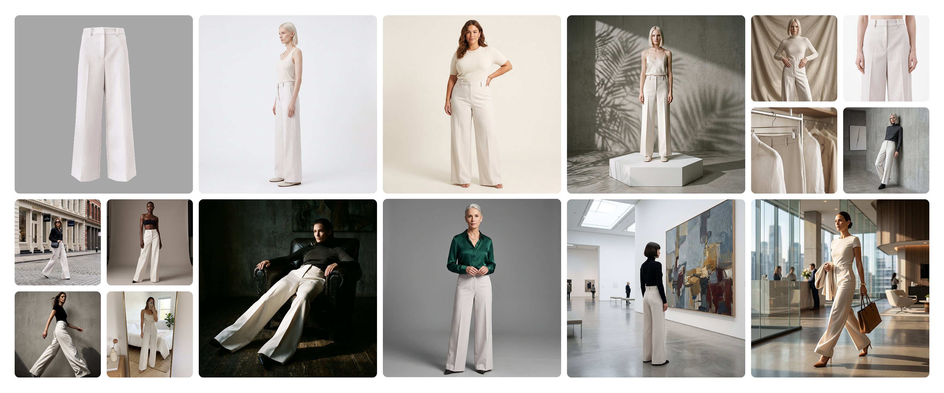 • Place every product on a diverse range of model sizes, skin tones, and body types — coverage no studio day can match