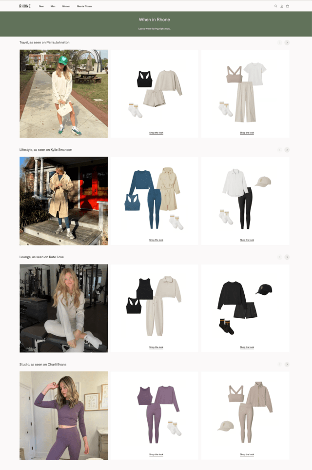 Rhone Apparel leverages Shopify Plus and Stylitics to power its “When in Rhone” influencer-styled carousel—a dynamic bundling experience that increases product discovery, delivers styled outfit inspiration, and drives higher average order value, all without requiring additional development resources. Read the full case study to learn more about how Rhone drives improvements in conversions and AOV with Stylitics.